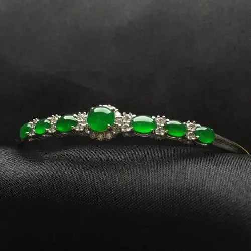 绿色是翡翠中的常见心情,也等于咱们各人通常所说的“翠”。绿色翡翠的心情。主淌若由于铬(Cr3+)离子替代了硬玉矿物中的铝离子(Al3+)而孕育的遵循,Cr、Fe的含量会径直影响绿色的浅深,铬(Cr3+)离子含量越高,翡翠的绿色越深。