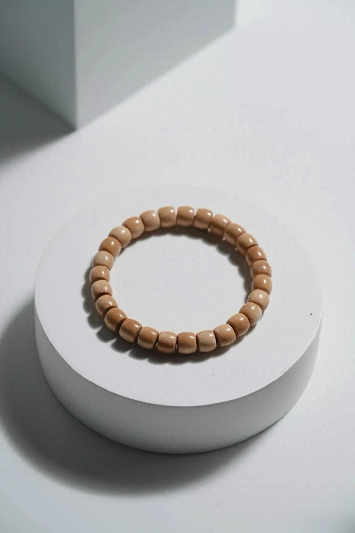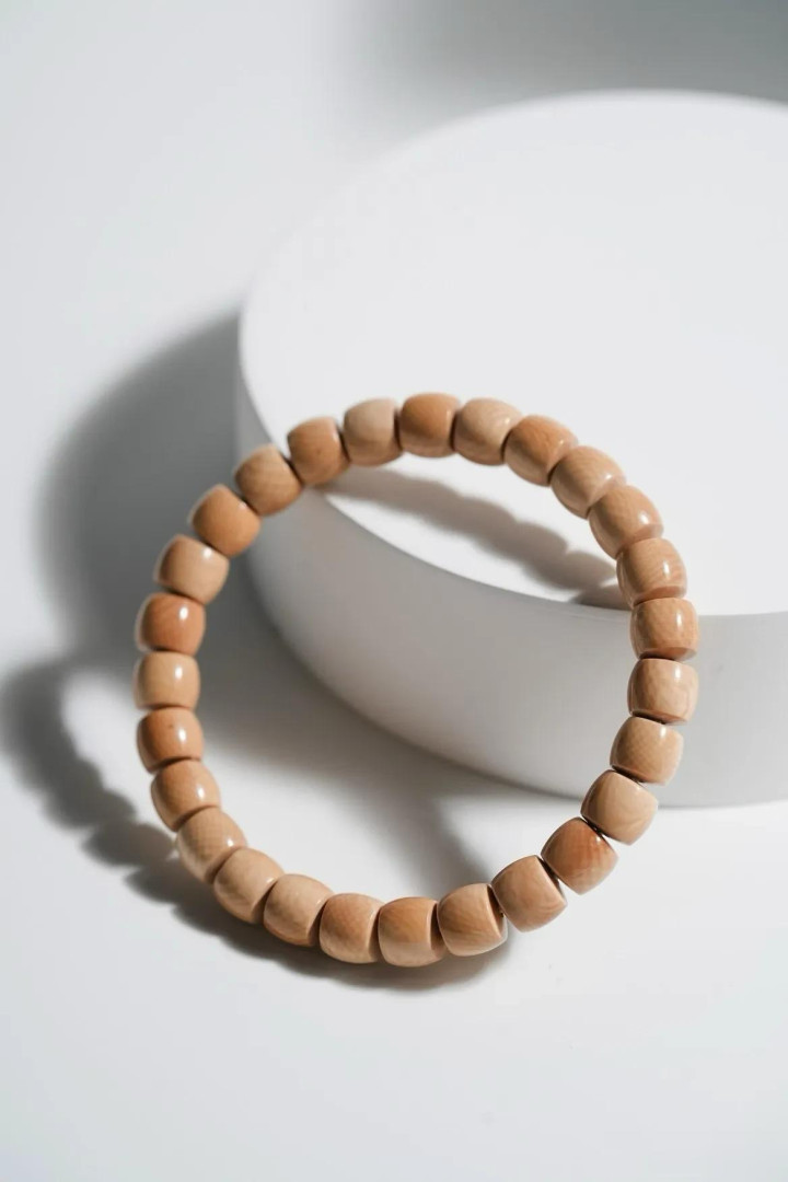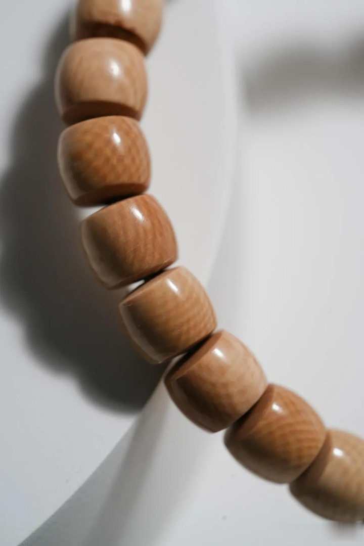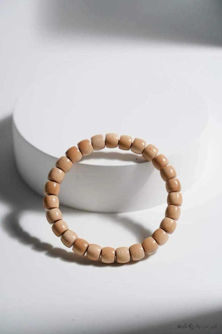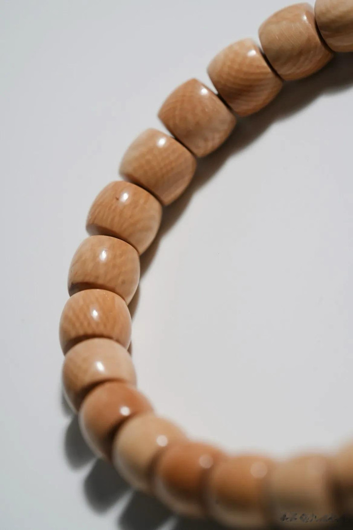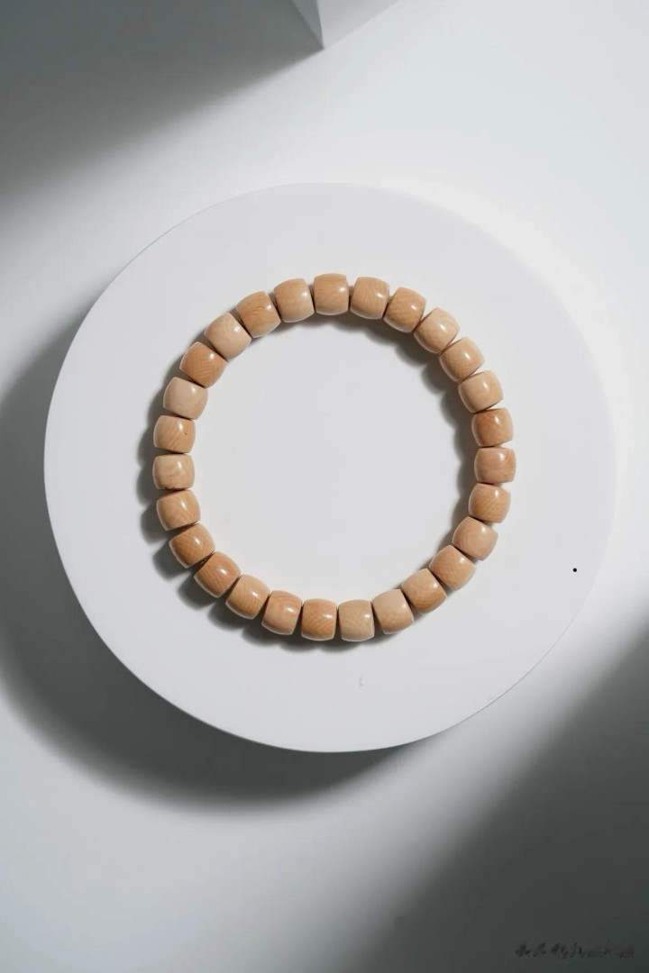 猛犸牙色如陈年普洱,直切珠型见古法。料质温润似膏脂,风化纹隐面前光。佩带腕间,是茶烟里的旧月色,亦是掌中的雪域遗珍。