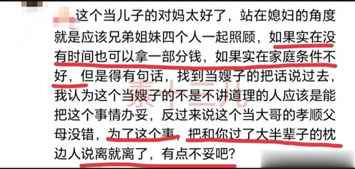 原本四个东说念主养一个妈,效果三个跑了,装傻充愣,让年老一个东说念主被“孝说念”俩字架在火上烤。