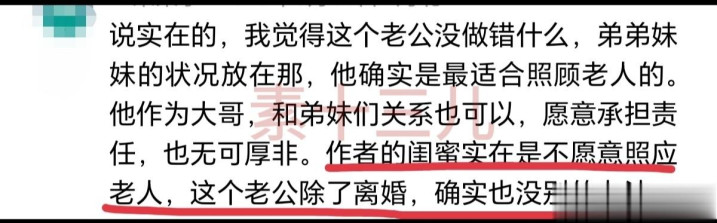 也有东说念主站老公,认为男东说念主也没错,闺蜜确切不肯意热心婆婆,男东说念主除了仳离,如实没什么别的目的。