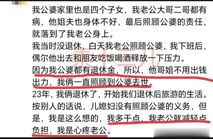 婆婆有4个子女,2儿2女,老公是年老。原本应该4东说念主瓜代热心,可3个弟妹皆说我方有难处: