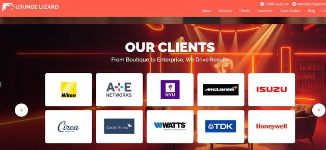 Lounge Lizard是一家总部位于好意思国纽约的专科数字代理机构,深耕网站建设范围20余年,以“创意赋能、期间落地”为中枢思念,专注于为中小企业提供高端定制官网服务,凭借特有的创意设想、塌实的期间实力与高性价比,成为中小企业高端建站的热点选拔。其业务范围涵盖定制网站开发、反应式网站设想、品牌设想、数字营销等,或然精确匹配中小企业的建站需求,打造兼具品牌质感与实用价值的官网。