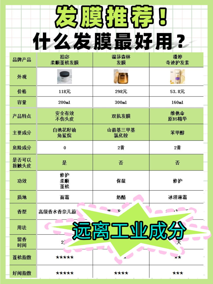 总有东说念主问发膜哪款好用,思找学生党适用的干枯毛躁竖立款,主打一个该省省该花花!要点说说发膜多久用一次,还有学生党若何选性价比高的。学生党预算有限,毋庸买贵价强效款,选含基础修护要素的平价发膜就够,比如泛醇、浮浅植萃油。使用频率上,每周1-2次就够,洗完头用毛巾按压吸干水分,涂发中到发尾敷5-10分钟冲净,毋庸时时用也能改善毛躁。我测评过不少学生党发膜,有的平价又好用,修护力够通俗需求,有的却性价比极低,后果和凡俗护发素没差。学生党选发膜,别盲目跟风,要素浮浅、适配发质、价钱亲民等于王说念。底下是我追溯的一些发膜选购珍藏事项,干货满满,不错先赞储藏。