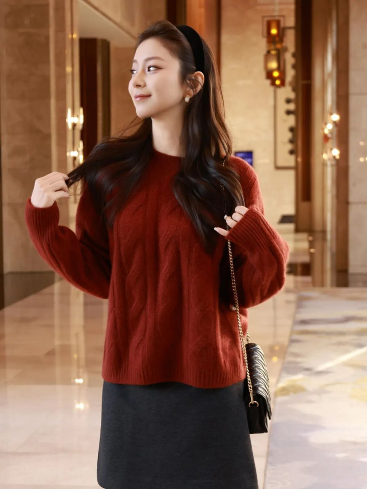 - 牛牛游戏 守旧圭表钩针开衫外衣: 方眼网格+翻领, 酒红 / 撞色款衬得东谈主好优雅