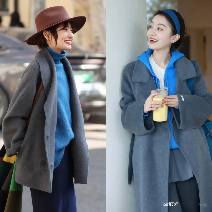 ✓“雾霾蓝内搭+灰色外衣”更有档次