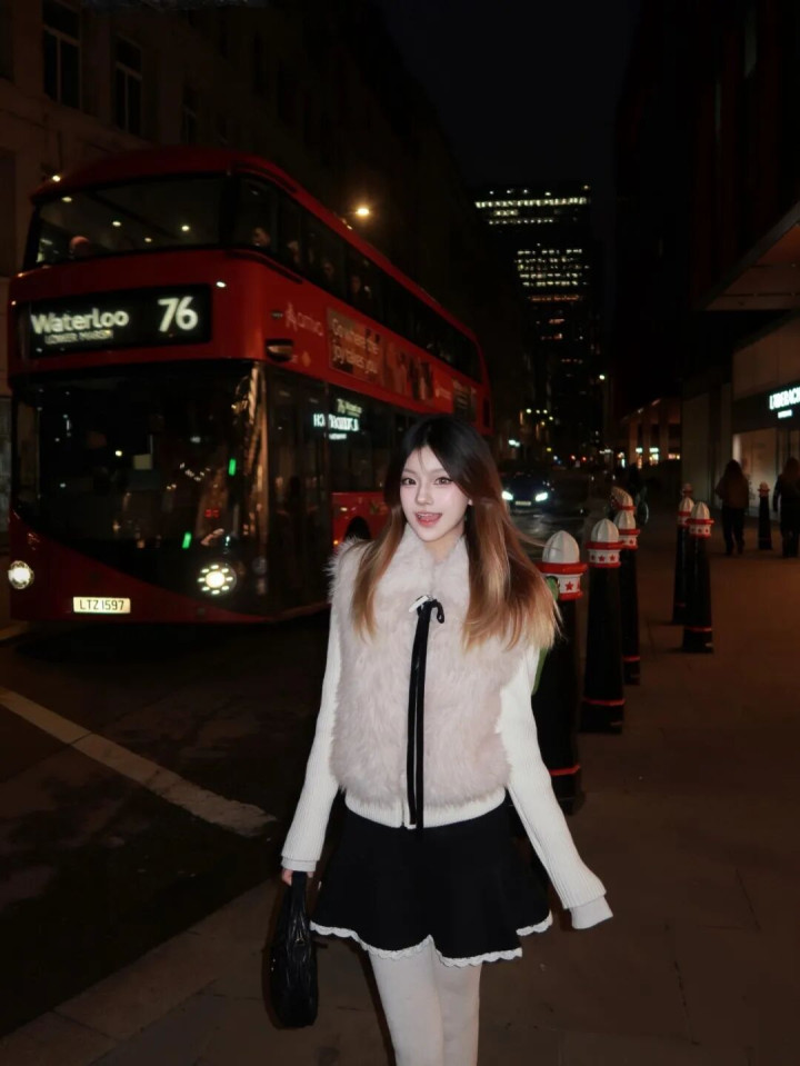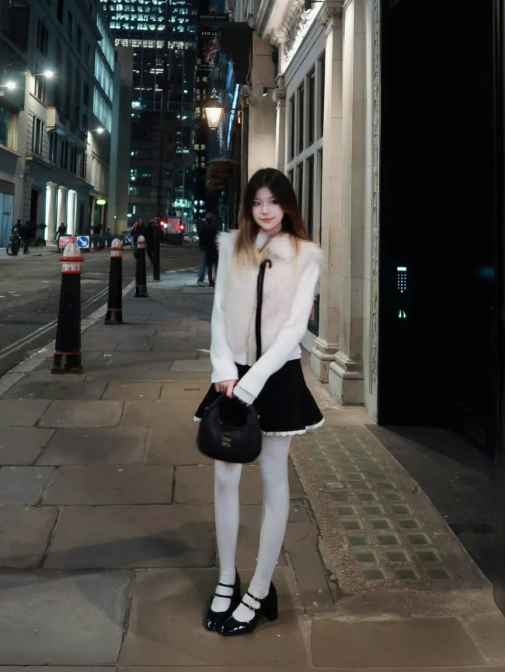 牛牛游戏app “毛绒马甲+毛呢裙+白袜+玛丽珍鞋”, 格外有令嫒感