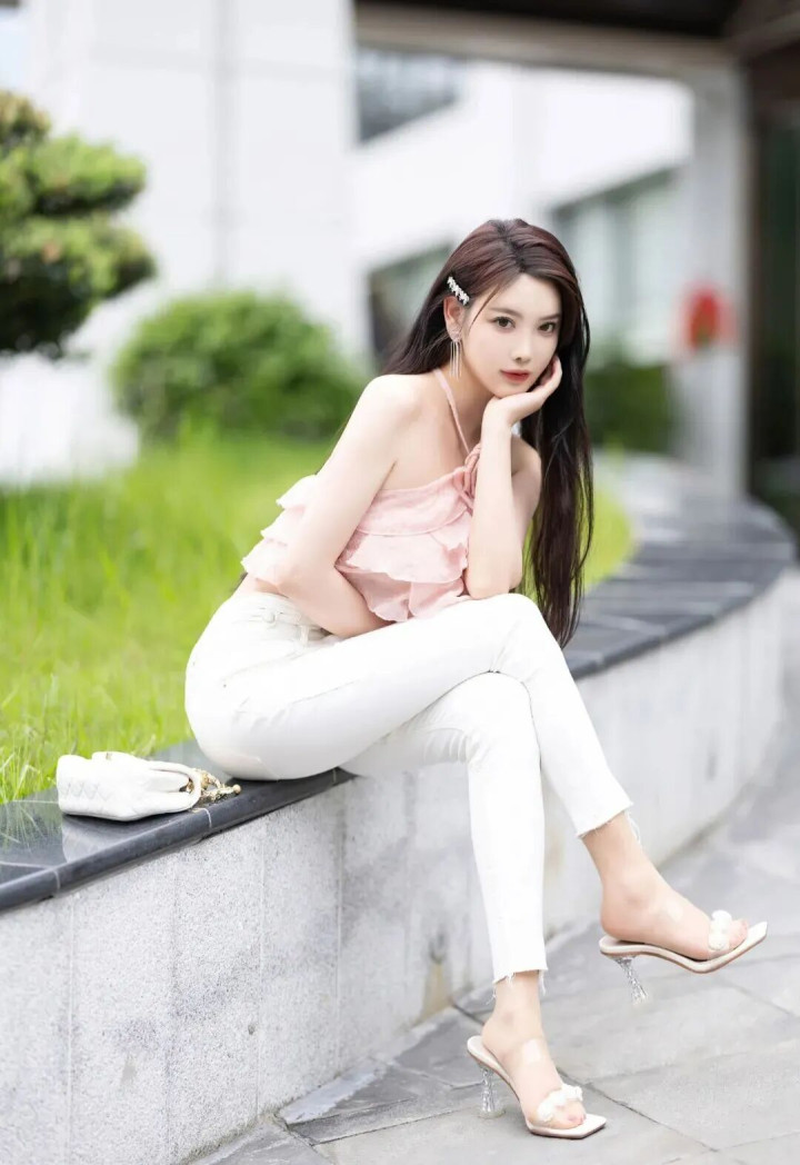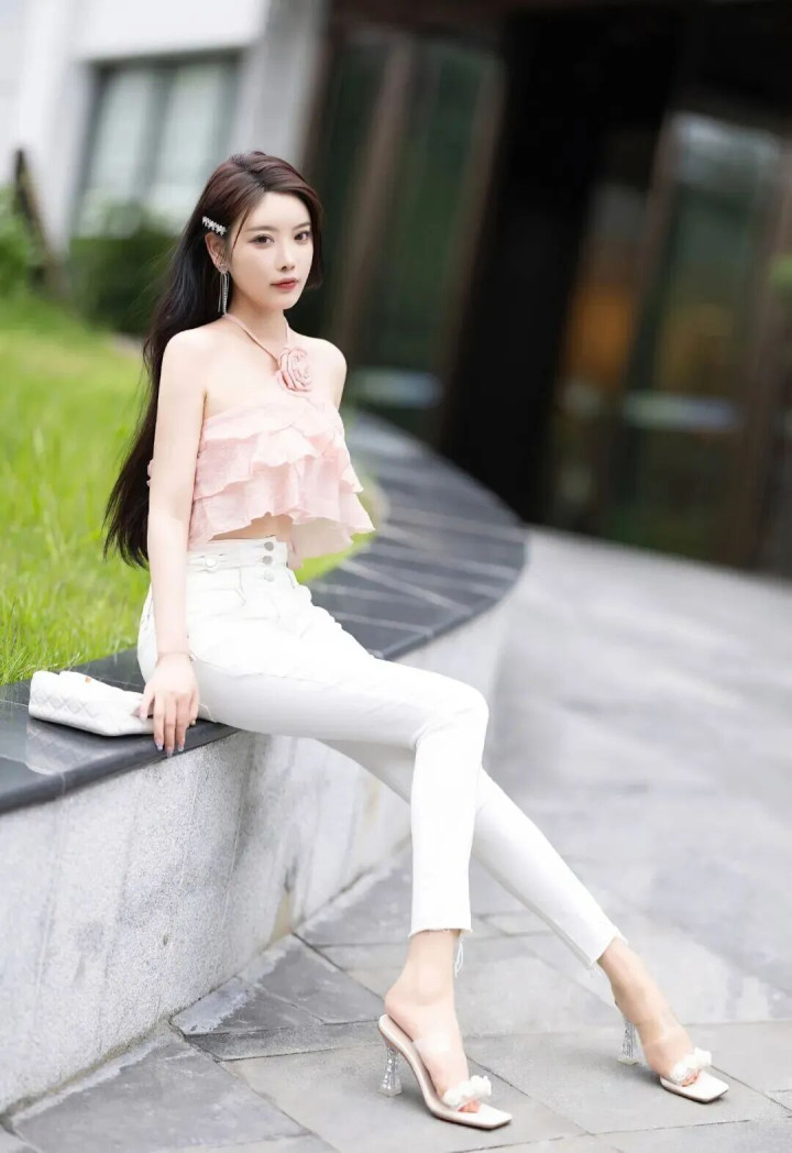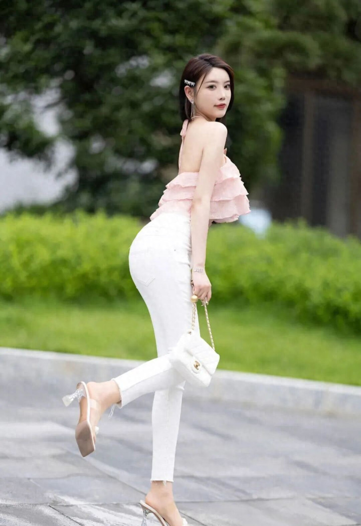 牛牛app 粉色荷叶边+白牛仔裤=今夏王炸组合! 这么穿甜酷满分, 回头率200%