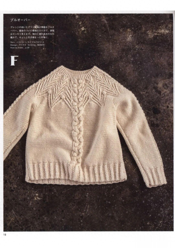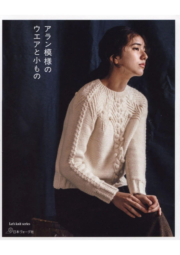 《アラン模様のウエアと小もの》杂志封面款,这款米白绞花套头衫,以羊驼羊毛织就多组立体绞花,修身微宽松的版型藏住腰腹线条,米白色裹着秋冬的轻柔感