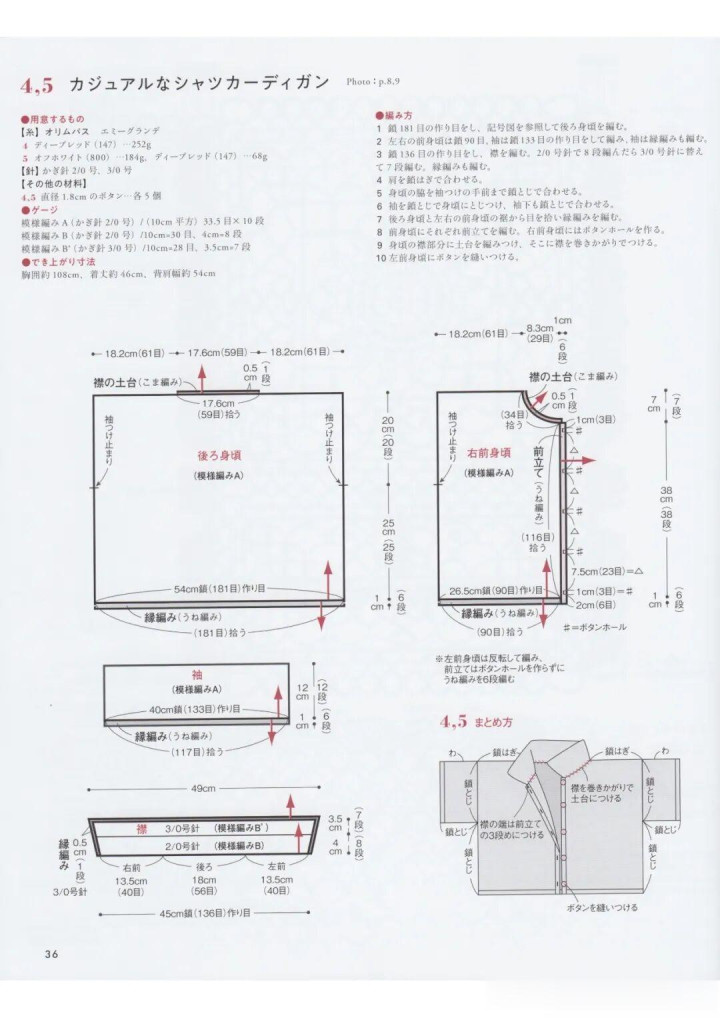 4,5 失业衬衫式开衫● 所需材料【线材】