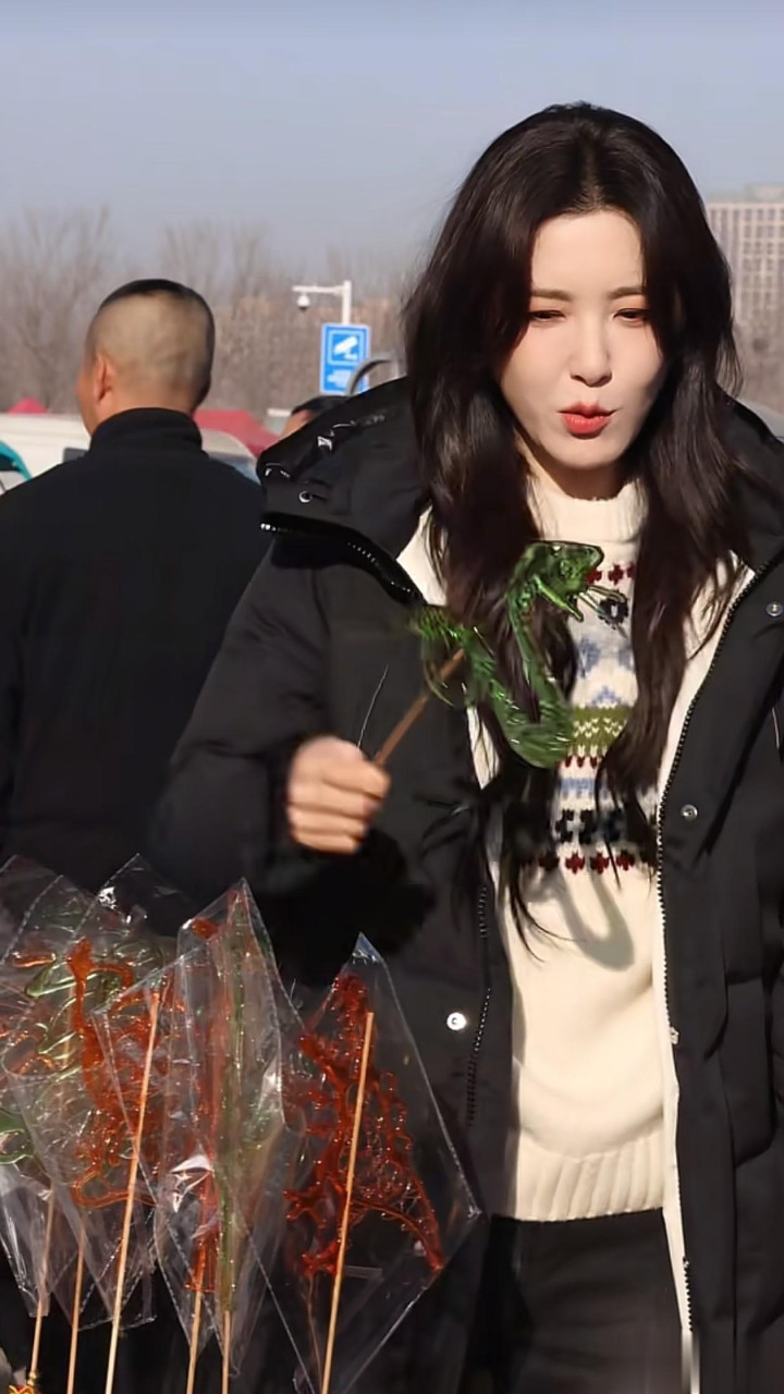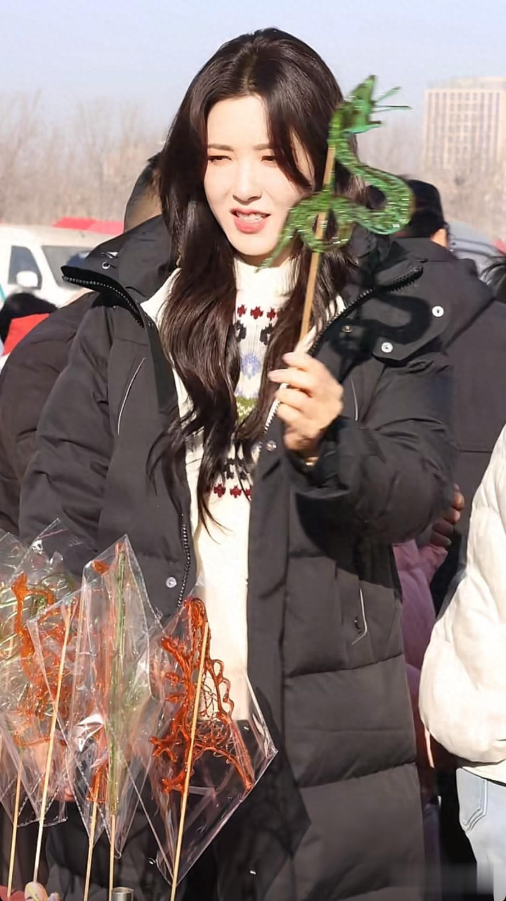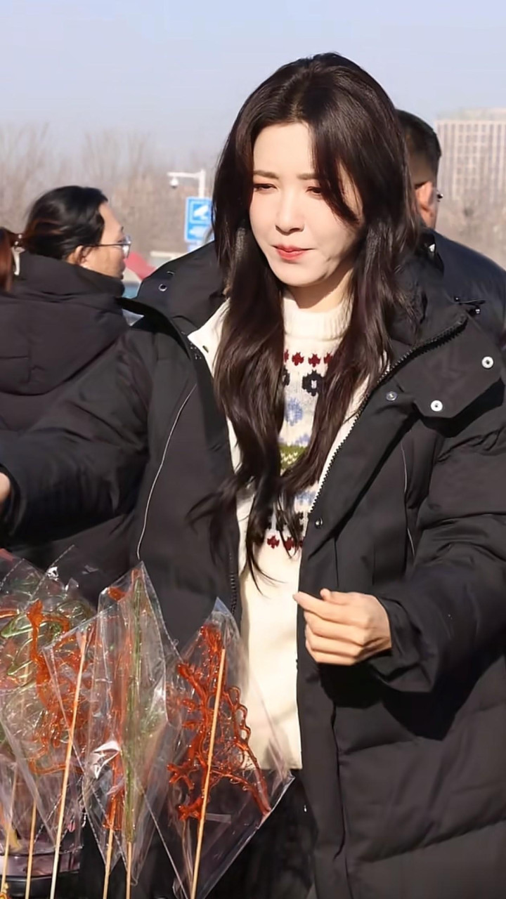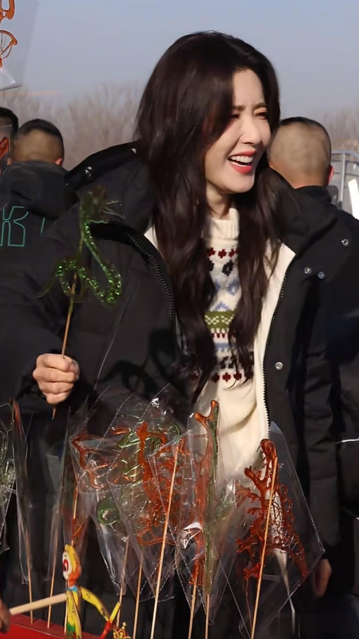 牛牛游戏 49岁曾黎冬日穿搭: 微鬈发+羽绒服, 逛大集手拿糖画, 侧颜好好意思