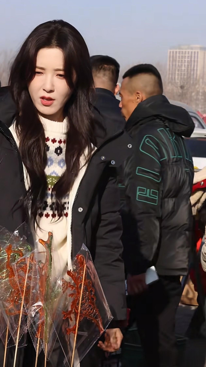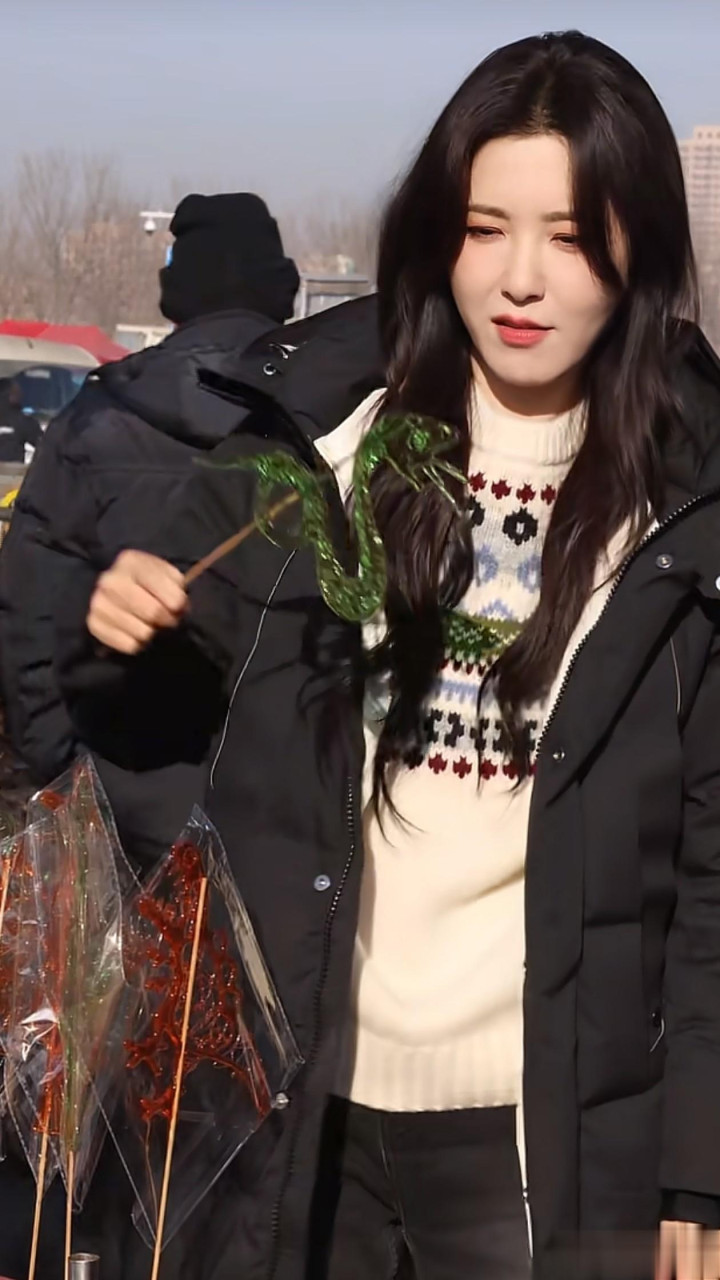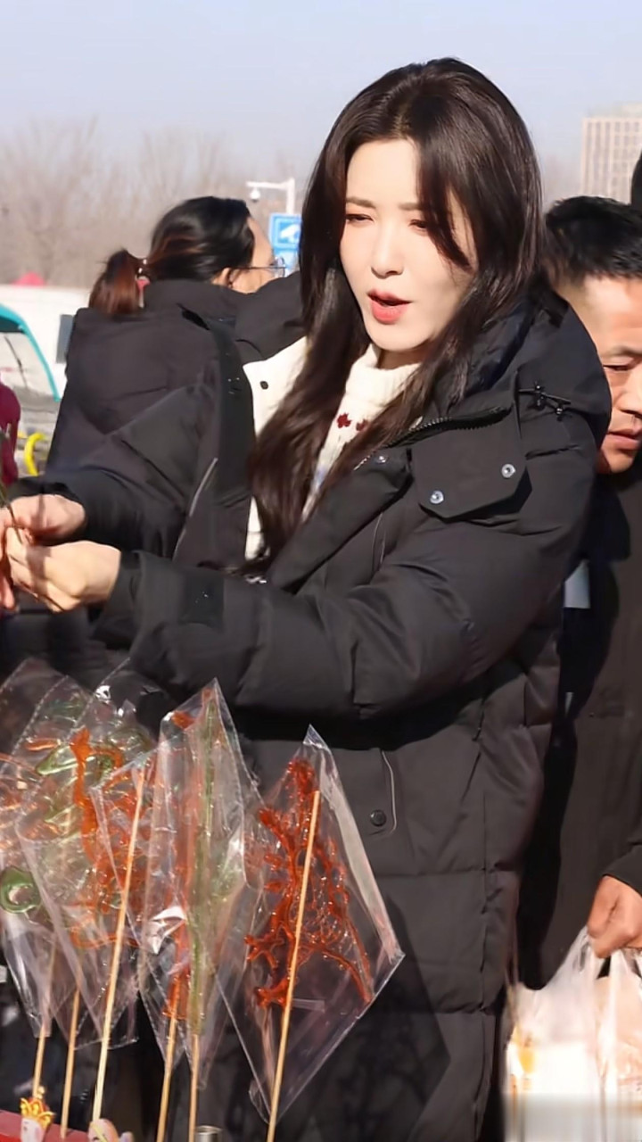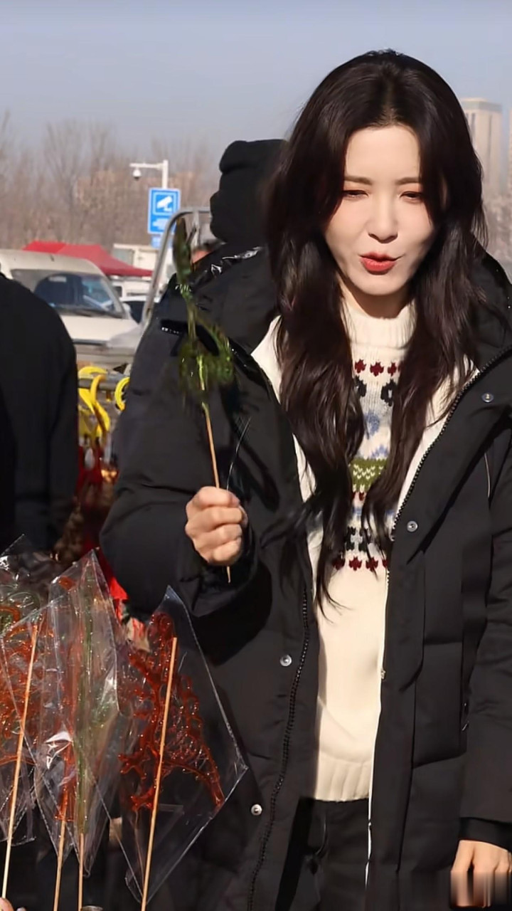 牛牛游戏 49岁曾黎冬日穿搭: 微鬈发+羽绒服, 逛大集手拿糖画, 侧颜好好意思