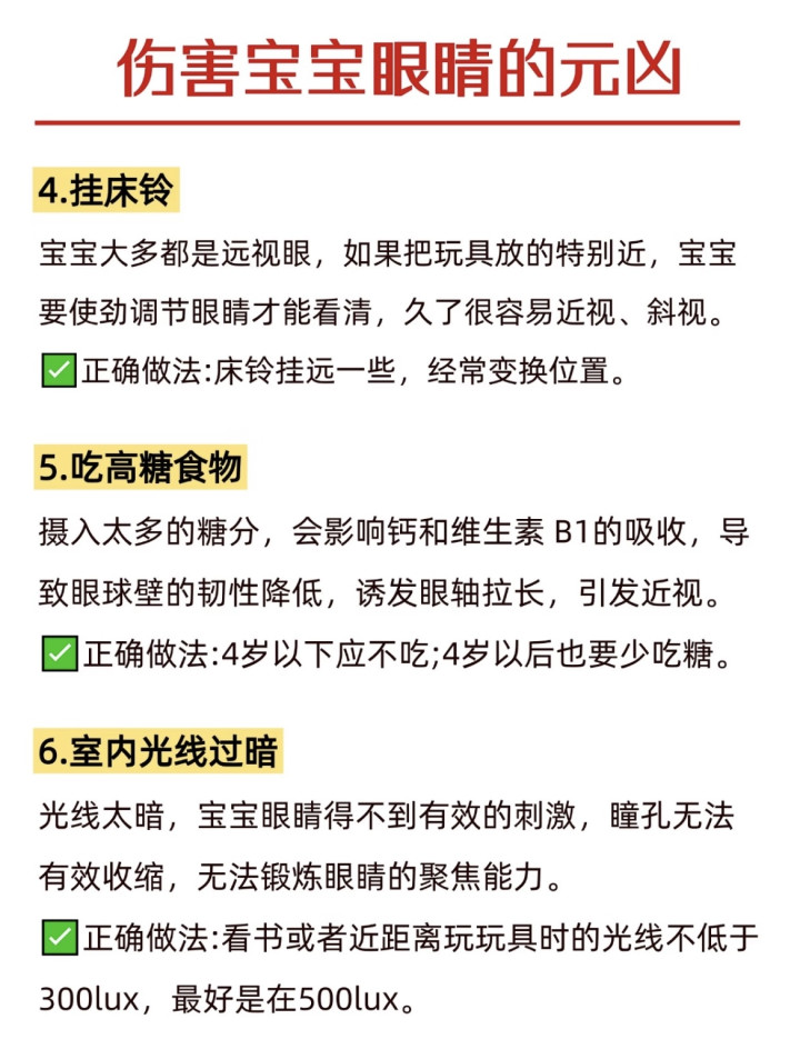 还有些民风,我们可能皆没意志到是错的。比如喂奶的时候,总在一个标的喂,宝宝老盯着一边的光亮看,技巧一长,眸子子老往中间挤,就容易养成斜睨的差错。再望望婴儿床头,是不是挂满了绚丽多彩的玩物?我们合计顺眼,可挂得太近、太深远,宝宝的眼睛就得一直对着一个点用劲聚焦,这不即是在给眼睛“加服务”吗?更别提有些姆妈把这当成哄娃神器,一挂即是一天,这跟我们大东说念主长技巧盯入部下手机屏幕有啥两样?
