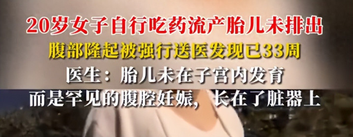 #20 岁女子自行吃药流产胎儿未排出# 停经后自行买流产药,合计胎儿已排出,直到腹部很是才就医,竟查出孕珠 33 周,且胎儿长在腹腔脏器上!这场惊魂资历,为何会变成如斯畏缩所在?