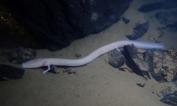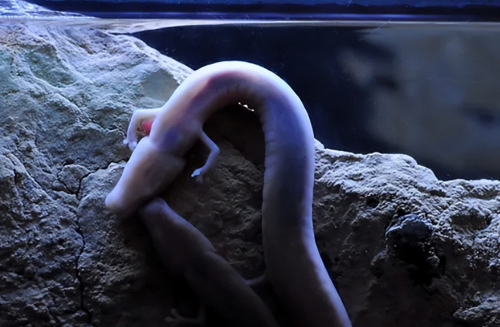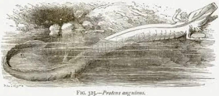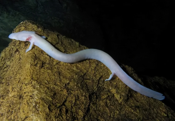 我说的这个动物叫洞螈(Proteus anguinus),是栖息在南欧迪纳拉喀斯特洞穴地下水体的非凡物种,包括意大利的里雅斯特隔壁的索查河流域,一直延迟到斯洛文尼亚南部、克罗地亚西南部和波斯尼亚和黑塞哥维那(波斯尼亚和黑塞哥维那是一个国度,俗称“波黑”)。
