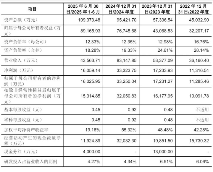 三瑞智能2025年上半年营收为4.36亿元,净利为1.61亿,扣非后净利为1.53亿元。