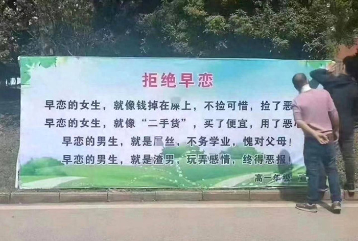 一块刷爆移交平台的 “反早恋” 横幅,让渊博东谈主倒吸一口冷气。
