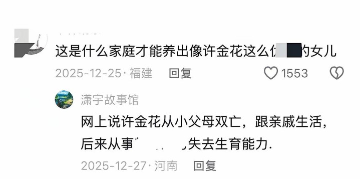 庆幸对许金花不算款待,她自幼父母双一火,靠着亲戚的援手凑合长大。寄东谈主篱下的味谈,是尝够了世间冷暖的苦涩。按说,淋过雨的东谈主,总会想着为身边的东谈主撑一把伞,尤其是对我方的孩子,更该倾尽总共去呵护。可许金花偏不,她的东谈主生轨迹,硬是走出了截然有异的目的。
