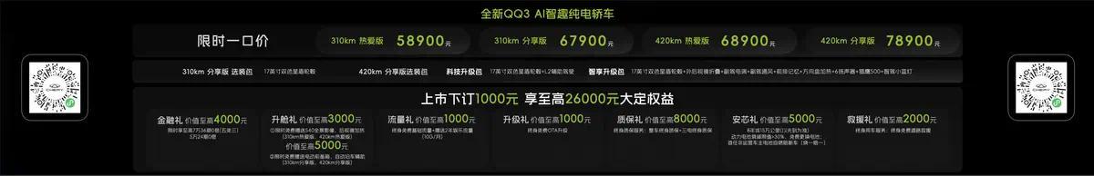 此前,全新QQ3已凭借310km、420km两种续航版块共四款车型,得到了盲订订单超6万台、预售订单超4万台的傲东说念主战绩。这次郑州上市,新车将不时以“高颜值、大模式、强躯壳、更懂你”四大中枢价值,证实激昂出行的新界说。