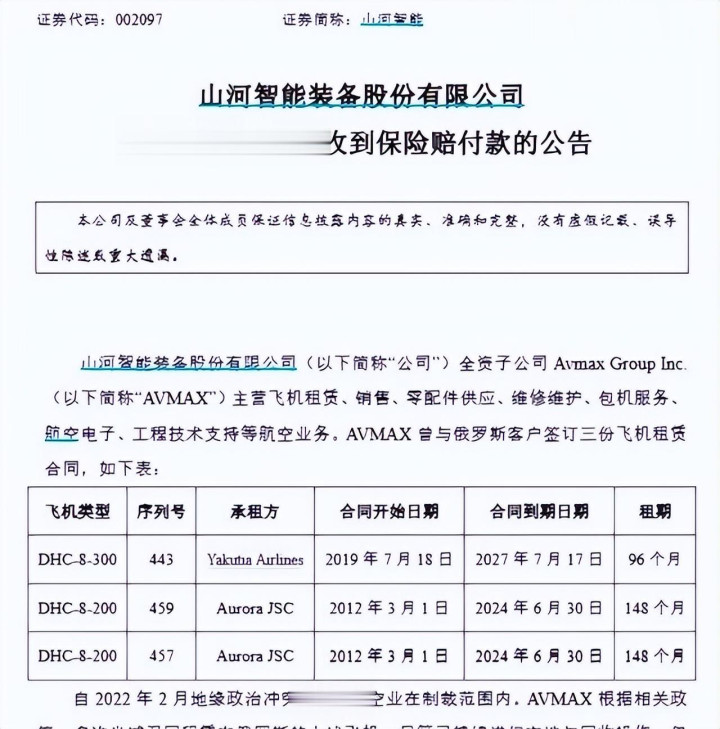 2023年,公司与俄罗斯NSK保障公司达成公约,就其中8架赢得2.08亿好意思元现款息争款。