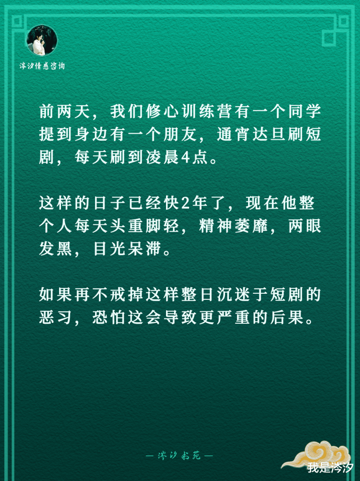 前两天,咱们修心历练营有一个同学提到身边有一个一又友,连明连夜刷短剧,每天刷到凌晨4点。这么的日子还是快2年了,当今他整个这个词东说念主每天条理泄漏,精神凄怨,两眼发黑,眼神呆滞。要是再不戒掉这么整日千里迷于短剧的恶习,惟恐这会导致更严重的效劳。