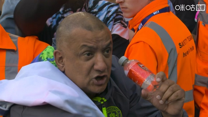 牛牛app Bottle了? ! 转播镜头又拍到曼城球迷“水瓶哥”, 他又提起了瓶子