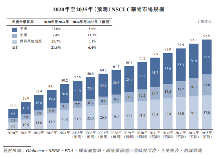 肺癌如故环球职守最重的癌症之一,其中非小细胞肺癌约占病例总额的85%,且在主要隘区发病数握续高潮。确认灼识商议的府上,环球NSCLC发病数瞻望将由2020年的约190万例增至2035年的290万例。中国极地面推动了这一增长,发病数瞻望将由2020年的约80万例增至2035年的130万例。此外,55%的NSCLC患者确诊为晚期。因此,NSCLC如故癌症圆寂的主要原因,在环球和中国均存在远大且握续未得志的医疗需求。