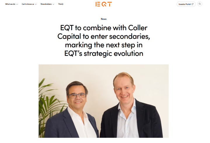 投资界(ID:pedaily2012)音信,1月22日,欧洲并购基金殷拓集团(EQT)秘书以32亿好意思元基础对价,收购巨匠著明私募股权二级交游巨头科勒本钱(CollerCapital)。本次交游基础对价为32亿好意思元,殷拓(EQT)将通过新发股份来进行支付,最高5亿好意思元现款的或有对价。
