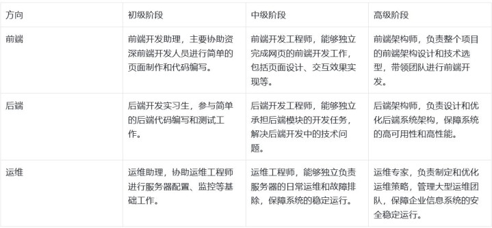 分析2:不明晰前端、后端、运维这三个目的的服务远景、处事发展旅途和所需手段,发怵选错目的影响将来的处事发展。