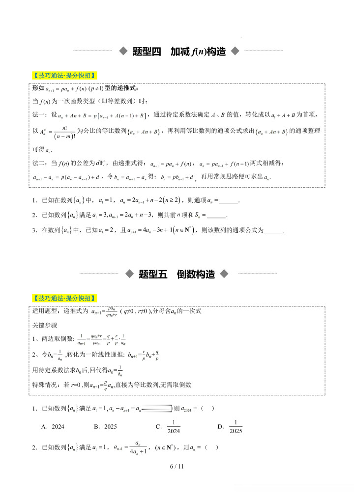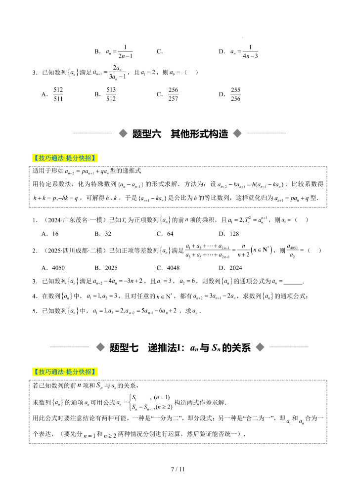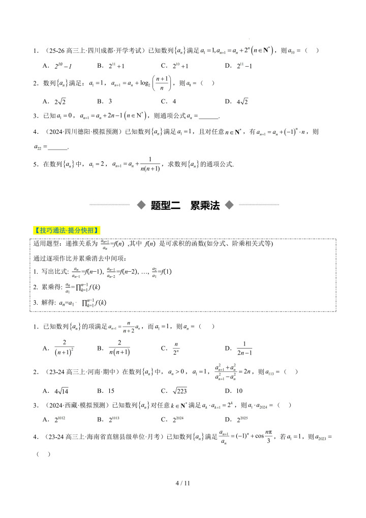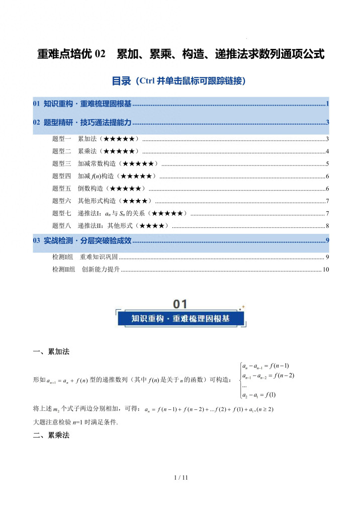 牛牛游戏app 重难点培优02 累加、累乘、构造、递推法求数列通项公式